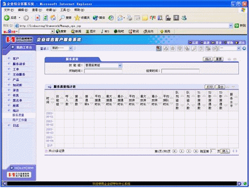 統(tǒng)計分析系統(tǒng)可以通過對客服中心的服務結果進行分析,了解對呼叫中心的人員個體和整體服務質量;通過對故障服務的分析,了解產(chǎn)品缺陷和相關資料缺陷。通過對銷售分析,了解市場需求的變化和購買人群的特性。