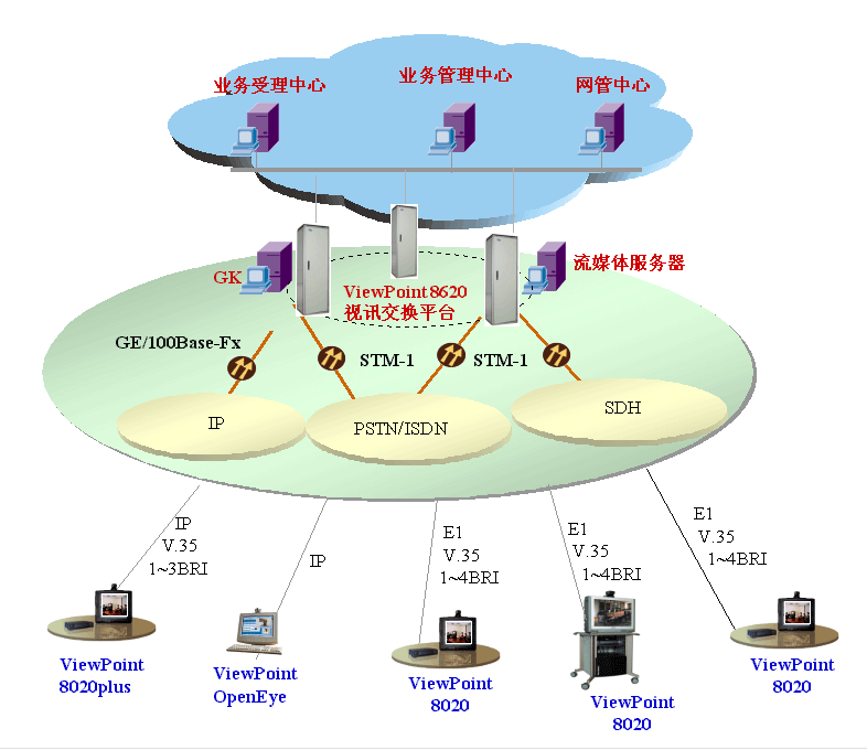 面對(duì)公眾視訊業(yè)務(wù)發(fā)展的契機(jī),由于基于窄帶H.320的視訊系統(tǒng)較為成熟,而基于IP網(wǎng)的H.323系統(tǒng)被普遍看好,ISDN目前是最方便的公眾視訊系統(tǒng)接入手段,相對(duì)于其他接入方式(如E1、DDN、FR、ATM、IP等)使用方便,可方便通過(guò)撥號(hào)方式與任何聯(lián)網(wǎng)地區(qū)建立會(huì)議。ViewPoint 8620視訊交換平臺(tái)采用寬窄帶一體化設(shè)計(jì),可為各行各業(yè)用戶(hù)提供完備的一體化解決方案,不僅能提供大容量ISDN用戶(hù)撥號(hào)接入,還能提供大容量的E1/V.35/IP方式接入。公眾視訊業(yè)務(wù)的發(fā)展,將視訊業(yè)務(wù)從單純?yōu)樯贁?shù)特定用戶(hù)群提供遠(yuǎn)程會(huì)議服務(wù),轉(zhuǎn)而面向公眾,為各行各業(yè)提供視訊業(yè)務(wù)。