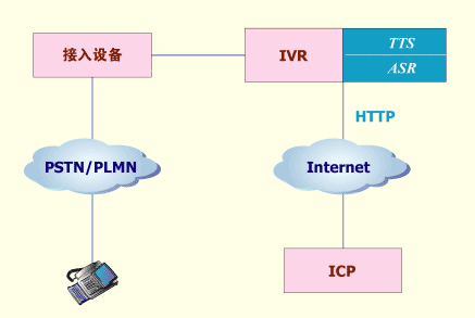 使用VXML語(yǔ)言編寫流程腳本或網(wǎng)頁(yè),該腳本或網(wǎng)頁(yè)的內(nèi)容與固網(wǎng)短信終端上的菜單相對(duì)應(yīng),普通用戶可通過(guò)語(yǔ)音方式瀏覽該菜單。當(dāng)用戶選擇信息點(diǎn)播后,VoiceIE系統(tǒng)模擬普通固網(wǎng)短信終端向ICP發(fā)送請(qǐng)求,并接收ICP發(fā)來(lái)的文字信息,然后通過(guò)TTS技術(shù)向用戶播放文字信息。當(dāng)然,固網(wǎng)短信終端也可通過(guò)菜單瀏覽方式使用這些采用VXML語(yǔ)言編寫的業(yè)務(wù),采用VXML語(yǔ)言編寫網(wǎng)頁(yè)的工作可由ICP來(lái)完成。