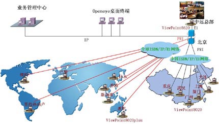 中國遠(yuǎn)洋(集團(tuán))公司全球會議電視系統(tǒng)覆蓋全國13個分部和全球8個分公司,系統(tǒng)主會場在中遠(yuǎn)集團(tuán)公司總部。系統(tǒng)采用ISDN、E1、IP混合組網(wǎng),使用了一套ViewPoint 8620視訊交換平臺、20套ViewPoint8020plus視訊終端和3套Openeye桌面終端,實(shí)現(xiàn)了中遠(yuǎn)(集團(tuán))公司和全球所有分支機(jī)構(gòu)之間的遠(yuǎn)程會議和業(yè)務(wù)培訓(xùn)。