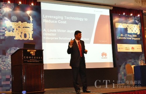 本次CCAS Symposium 2009的主題為“Translating talent into ROI”,著重探討在目前金融危機的陰霾下,如何通過精細化的運營管理,將人力資源或人才轉(zhuǎn)換成實實在在的投資回報率。華為資深專家Louis”做了”Leveraging