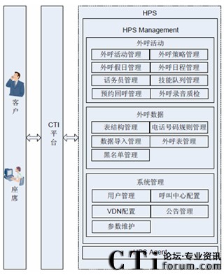 Server)提取HPS Management中導入的客戶數(shù)據(jù),自動批量的執(zhí)行外呼任務?蛻艉敉ê,簽入HPS Agent 的話務員為客戶提供語音服務。