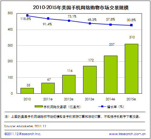 2015年美國(guó)手機(jī)網(wǎng)購(gòu)交易規(guī)模將達(dá)到310億美元