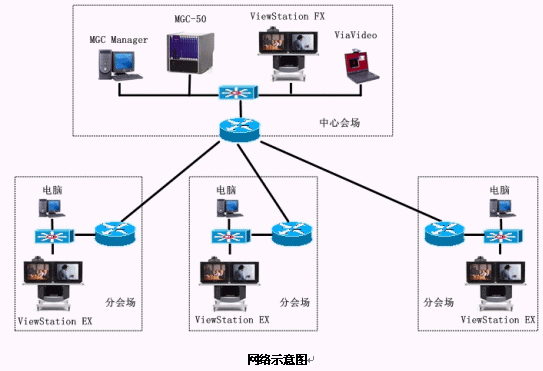根據(jù)需求及網(wǎng)絡(luò)情況,我們?yōu)樘窖蟊kU(xiǎn)建設(shè)基于系統(tǒng)內(nèi)部Intranet的基于H.323標(biāo)準(zhǔn)的視頻會(huì)議系統(tǒng)。系統(tǒng)以1個(gè)MCU(多點(diǎn)控制單元)為中心,包括1個(gè)主會(huì)場(chǎng),13個(gè)分會(huì)場(chǎng),10個(gè)個(gè)人桌面系統(tǒng)。