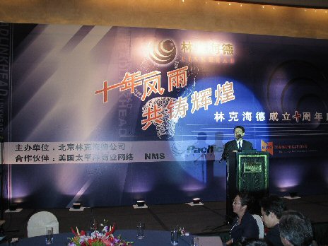 2004年6月10日,林克海德公司在昆侖飯店迎來了十年華誕,林克海德的新朋老友歡聚一堂,齊唱同一首歌。美國(guó)NMS總裁Bob,太平洋網(wǎng)絡(luò)總裁Tony都遠(yuǎn)程趕來祝賀。在過去的十年中,林克海德見證了中國(guó)電信增值業(yè)務(wù)領(lǐng)域從無到有、從簡(jiǎn)單的語音信箱到目前斑斕多彩的彩信業(yè)務(wù)的發(fā)展歷程,被譽(yù)為國(guó)內(nèi)板卡市場(chǎng)的旗艦,F(xiàn)在隨著中國(guó)通信領(lǐng)域電信增值業(yè)務(wù)的發(fā)展,林克海德憑借語音增值業(yè)務(wù)方面的豐富經(jīng)驗(yàn),成為業(yè)內(nèi)知名的語音、傳真、數(shù)據(jù)等多媒體業(yè)務(wù)開發(fā)平臺(tái)的提供商和系統(tǒng)方案服務(wù)商,林克海德公司走進(jìn)了新的語音時(shí)代!
