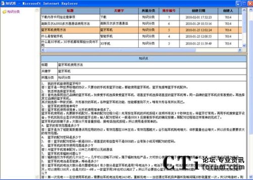 知識(shí)庫可以由企業(yè)相關(guān)人員自行設(shè)定、更新最新的產(chǎn)品知識(shí)、市場信息和競爭產(chǎn)品比較等信息。強(qiáng)大的搜索功能也使得查詢更加便利。如當(dāng)客戶提出某問題使得服務(wù)人員無法立即回答時(shí),系統(tǒng)還提供相應(yīng)的填寫欄目以便及時(shí)發(fā)送至主管,請求幫助。而當(dāng)主管對此問題進(jìn)行回復(fù)后,可以選擇將此問題自動(dòng)放入知識(shí)庫,以便同其他人員分享。系統(tǒng)可以根據(jù)問題的點(diǎn)擊率將最感興趣的問題排列在最前,并可以匯總出一定時(shí)間內(nèi)最感興趣的問題及產(chǎn)品,作為企業(yè)對服務(wù)人員今后培訓(xùn)的重點(diǎn)。同時(shí),系統(tǒng)將自動(dòng)記錄每一位客戶的咨詢記錄,及時(shí)更新并在客戶再次致電時(shí),顯示在客戶資料當(dāng)中。