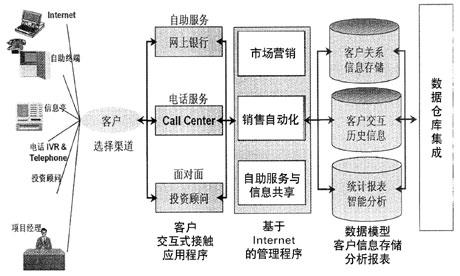 針對(duì)商業(yè)銀行面臨的挑戰(zhàn)和真實(shí)的需要,Oracle開發(fā)了面向銀行業(yè)的CRM解決方案。該解決方案提供全方位、統(tǒng)一的多渠道協(xié)同的客戶交互服務(wù)入口,包括網(wǎng)上自助服務(wù)、網(wǎng)上他助服務(wù)(通過Call Center在線指導(dǎo)客戶理財(cái)或提供投資建議)、電話自助服務(wù)、電話專家服務(wù)、電話智能市場(chǎng)推銷和銷售等,F(xiàn)場(chǎng)服務(wù)則提供客戶經(jīng)理與客戶面對(duì)面交流的能力,包括知識(shí)共享(金融市場(chǎng)信息、銀行產(chǎn)品信息和各業(yè)務(wù)部門發(fā)布的信息等)、銀行信息的及時(shí)獲取、產(chǎn)品和服務(wù)介紹、適時(shí)的投資建議、客戶交易行為追蹤、通過智能化工具提供專家服務(wù)、銷售機(jī)會(huì)管理等,允許重點(diǎn)客戶通過Web、電話或與客戶經(jīng)理/投資顧問面談等方式,提供更靈活的服務(wù)選擇和更及時(shí)的服務(wù),以保留大客戶群,增長(zhǎng)股東利益。