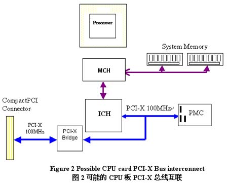 最初的PMC規(guī)范支持33MHz和66MHz PCI總線操作。在2002年,VITA標(biāo)準(zhǔn)化組織認(rèn)識(shí)到了增加對(duì)PCI-X總線操作支持的必要性。VITA-39規(guī)范在PMC P1中加入了PCIXCAP信號(hào),此信號(hào)使得PMC同時(shí)支持66, 100 和133MHz PCI-X處理。VITA-39規(guī)范也包含了用以定義在不同操作頻率下支持的最大PCI負(fù)載所需的仿真工作。這是非常重要的,因?yàn)榇蠖嗍荘MC承載板還有其它的板載PCI設(shè)備。在承載板上的設(shè)備和PMC間共享PCI總線會(huì)對(duì)總線操作產(chǎn)生一些難以預(yù)見(jiàn)的挑戰(zhàn)。如果承載板的PCI總線段運(yùn)行在PCI-X 133MHz,而PMC被安裝在33MHz總線段上時(shí)總線段將運(yùn)行于33MHz,需小心使用支持PCI-X的PMC承載板,確保識(shí)別出同共享PCI總線的任何其它設(shè)備間產(chǎn)生的沖突。在下面的例子中,在PMC和PCI-X橋之間共享100MHz PCI-X總線,當(dāng)未安裝PMC時(shí),該總線將運(yùn)行于PCI-X 100MHz.,而當(dāng)安裝了33MHz PCI PMC后,將運(yùn)行于33MHz PCI,這就影響了bridge的吞吐量。