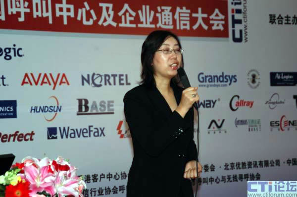我們今天上午運(yùn)營管理分論壇第二位演講者,是大北歐通訊設(shè)備有限公司北亞地區(qū)業(yè)務(wù)總經(jīng)理張琳女士。有請張琳女士。她演講的題目是“再談綠色呼叫中心”,這是我們會前商定的題目,我不知道她有沒有變化,一會兒讓她自己來介紹。