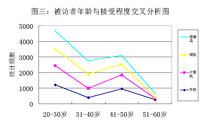 調(diào) 查 表 明 : 收 入 在 600 元 到 1500 元 之 間 的 階 層 對(duì) 電 話 購 物 的 接 受 程 度 最 高 ; 而 20 歲 到 30 歲 這 個(gè) 年 齡 段 的 人 對(duì) 電 話 購 物 的 接 受 程 度 最 高 。