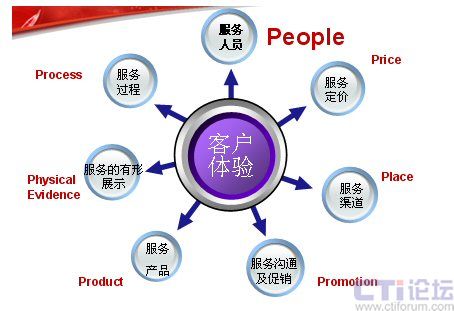 下面這張圖是服務營銷的7P模型,在這里我認為最應該關注的是People——人。這里,我想引用世界經(jīng)理人刊登的一篇文章“影響中國的十大管理理念”上的一段文字:“邁向服務型經(jīng)濟實際上就是邁向人才經(jīng)濟。在制造業(yè)中,價值是由機器創(chuàng)造的。在服務業(yè)中,價值則是人創(chuàng)造的!边@也是在服務業(yè)中,要將“人”進行體現(xiàn)。也許你不在乎為你制造產(chǎn)品的工人長的美或丑,但為客戶服務的人員如果長的很丑,對服務就會有一定的影響。大家只看產(chǎn)品結果,不關注過程,但是服務卻是與過程緊密的結合。