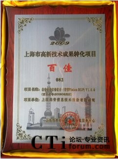 CTI論壇(ctiforum)7月19日消息(記者 潘婷婷):2010年7月,在夏日的熱潮中,維音又迎來了值得慶賀的殊榮。作為上海市高新技術(shù)軟件企業(yè),維音自主研發(fā)的軟件產(chǎn)品VisionROP再一次得到了認(rèn)可,被評(píng)為“2009年度上海市高新技術(shù)成果轉(zhuǎn)化項(xiàng)目百佳”。
