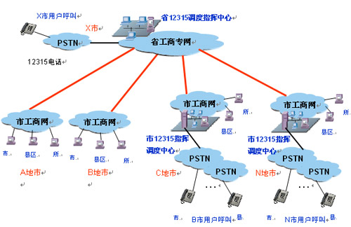 - 利用了國家公眾電信網(wǎng),實現(xiàn)全省12315信息網(wǎng)及消費者話音網(wǎng)絡(luò)的綜合高速公路。