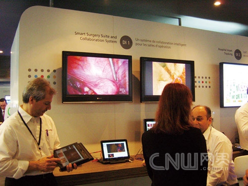 而基于貝爾實(shí)驗(yàn)室創(chuàng)新技術(shù)的Smart Surgery Suite & Collaboration System將音頻、視頻和數(shù)據(jù)會議與協(xié)作功能帶入手術(shù)室。這套系統(tǒng)可以提供高質(zhì)量的內(nèi)窺鏡視頻信息,這樣外科專家可以遠(yuǎn)程監(jiān)控和指導(dǎo)手術(shù),也可以為其他醫(yī)生提供觀摩學(xué)習(xí)的機(jī)會。它可以根據(jù)數(shù)據(jù)傳輸率提供高質(zhì)量視頻編碼技術(shù)。這樣可以提供足夠質(zhì)量的視頻分辨率而不會使網(wǎng)絡(luò)擁塞。另外還提供多方telestration功能,使遠(yuǎn)程的專家可以在直播的內(nèi)窺鏡視頻畫面上畫圖和作注釋,F(xiàn)場演示的是將內(nèi)窺鏡視頻畫面?zhèn)魉偷蕉鄠(gè)客戶端設(shè)備上,本地醫(yī)生在畫面作出標(biāo)記,向遠(yuǎn)程的專家提問,遠(yuǎn)程專家在畫面上標(biāo)出需要切掉的部分。在手術(shù)的同時(shí),來自全球的醫(yī)生都可以通過網(wǎng)絡(luò)實(shí)時(shí)觀看。