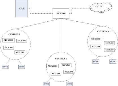 MCX2000支持連接多個屬于不同企業(yè)的MCX200/1000,能夠把同一個企業(yè)的不同MCX200/1000集中組成IP CENTREX群,支持群內(nèi)呼叫、群外呼入、群外呼出等功能,使用戶感覺不到多個MCX200的存在,如同所有的用戶在同一個交換設(shè)備內(nèi)。MCX2000同時支持多個IP