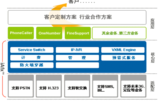 。。"iAfxTM"是一個(gè)融合語音、圖像、消息、多媒體數(shù)據(jù)的分布式通信應(yīng)用架構(gòu),為業(yè)務(wù)處理和應(yīng)用開發(fā)提供了全新的概念和良好的環(huán)境,它既充分考慮了對(duì)現(xiàn)階段運(yùn)營商網(wǎng)絡(luò)和基礎(chǔ)構(gòu)架的支持,又兼顧了網(wǎng)絡(luò)和通信技術(shù)向下一代發(fā)展的必然趨勢(shì);趇AfxTM架構(gòu),F(xiàn)INESUPPORT®IP呼叫中心既能適應(yīng)現(xiàn)有網(wǎng)絡(luò)環(huán)境,又能向下一代網(wǎng)絡(luò)(NGN)平滑過渡。