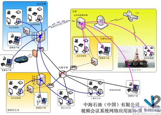 中海石油(中國)有限公司V2 Conference系統(tǒng)網(wǎng)絡(luò)應(yīng)用拓?fù)鋱D:
