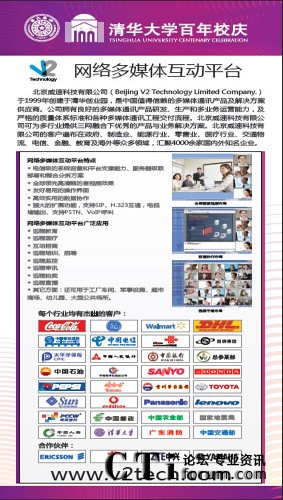 CTI論壇(ctiforum)5月3日消息(記者 張潔): 天行健,君子以自強(qiáng)不息,地勢(shì)坤,君子以厚德載物。2011年4月23日,清華大學(xué)迎來(lái)百年華誕。在建校百年之際,V2威速聯(lián)合母校----清華大學(xué)百年校慶辦展出了V2網(wǎng)絡(luò)多媒體互動(dòng)平臺(tái)。V2威速眾多旗艦產(chǎn)品之一----V2網(wǎng)絡(luò)多媒體互動(dòng)平臺(tái)始創(chuàng)于1999年清華大學(xué)第二屆“大學(xué)生創(chuàng)業(yè)比賽”。同年,V2威速于清華創(chuàng)業(yè)園創(chuàng)立,經(jīng)過(guò)11年的發(fā)展,V2威速已是中國(guó)值得信賴(lài)的多媒體通訊產(chǎn)品及解決方案供應(yīng)商。