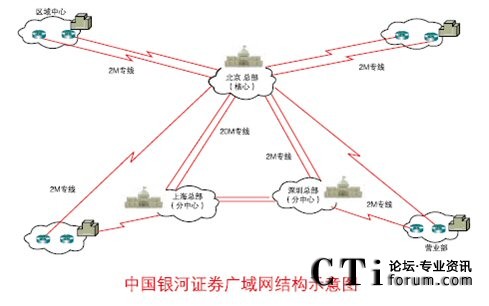 銀河證券采用二級(jí)網(wǎng)絡(luò)結(jié)構(gòu),其中一級(jí)采用三中心的冗余結(jié)構(gòu);二級(jí)為各營(yíng)業(yè)部。營(yíng)業(yè)部線路上采用雙專(zhuān)線的冗余線路方式,其中兩條線路分別屬于兩家不同的電信運(yùn)營(yíng)商。營(yíng)業(yè)設(shè)備上采用雙設(shè)備,保證了營(yíng)業(yè)部在設(shè)備上的冗余,避免硬件設(shè)備單點(diǎn)故障,同時(shí)實(shí)現(xiàn)了業(yè)務(wù)網(wǎng)與辦公網(wǎng)的物理分離。
