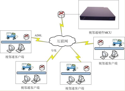 視鄰?fù)ㄏ到y(tǒng)采用軟硬結(jié)合的解決方案思想進行設(shè)計,主要組成是一個MCU,依據(jù)點數(shù)配備軟件終端,軟件終端含一個帶云臺可遠(yuǎn)程遙控的攝像頭,以及一個自帶回音消除的全向麥與小音箱。和傳統(tǒng)323產(chǎn)品比較,部署簡單,靈活,在互聯(lián)網(wǎng)表現(xiàn)效果良好,并具備強大的數(shù)據(jù)功能,同時價格更具競爭力,而純軟視頻會議系統(tǒng)相比,則在穩(wěn)定性,清晰度上更勝一籌。