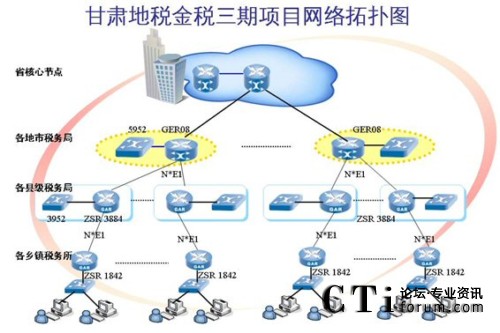 為了實(shí)現(xiàn)這個(gè)目標(biāo),甘肅地稅金稅三期計(jì)劃建立包括甘肅地稅全省網(wǎng)絡(luò)的省、市、縣、所四級(jí)設(shè)備,即省級(jí)核心路由器及交換機(jī)、地市路由器及交換機(jī)、縣級(jí)路由器及交換機(jī)和稅務(wù)所級(jí)路由器及交換機(jī),包含300多臺(tái)高中低端路由器及400多臺(tái)高中低端交換機(jī)設(shè)備。經(jīng)過綜合評(píng)選和激烈的競爭,甘肅省地稅金稅三期重點(diǎn)項(xiàng)目花落中興通訊。