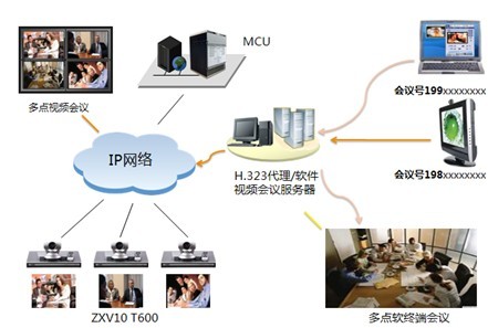 在現(xiàn)有視頻會議網(wǎng)絡基礎上新增軟件視頻會議系統(tǒng)設備,主要負責軟終端接入MCU、多點軟終端會議。