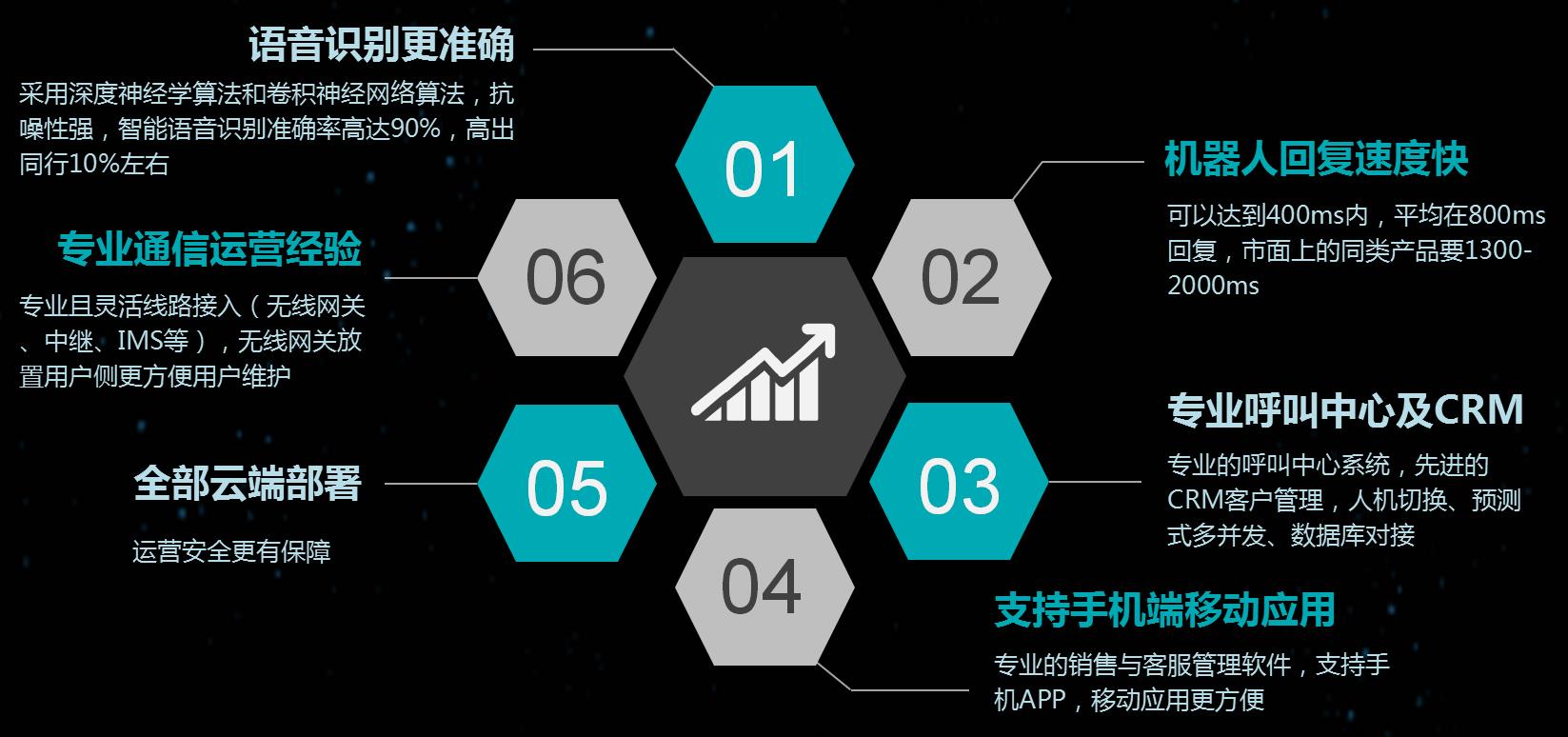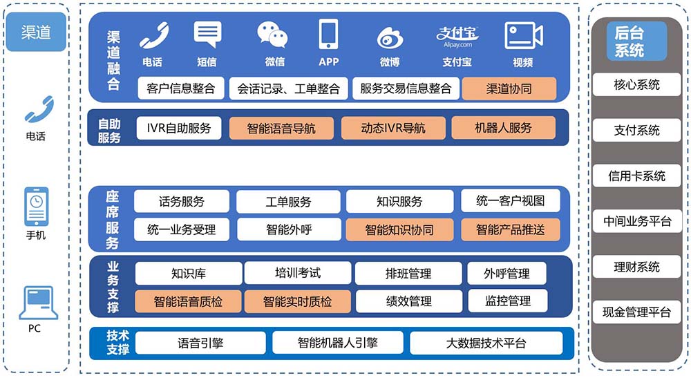 智能鑒權(quán)、智能語音導(dǎo)航、智能路由、智能知識庫匹配、智能質(zhì)檢、智能外呼