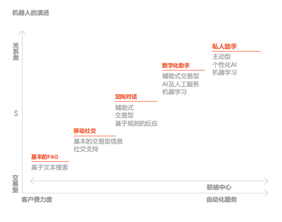 客戶服務(wù)智能化: 就是通過對服務(wù)流程的優(yōu)化或改造以支撐AI技術(shù)應(yīng)用最終達(dá)到提升人工效率和客戶體驗(yàn)的過程。在用戶層面包括:語音或文本聊天機(jī)器人、實(shí)體機(jī)器人、虛擬座席、智能IVR 、智能外呼等。在座席層面包括:智能知識庫、智能工單系統(tǒng)、智能營銷輔助系統(tǒng)、流程機(jī)器人、座席學(xué)習(xí)系統(tǒng)、座席情緒感知系統(tǒng)等。在管理層面包括:智能質(zhì)檢系統(tǒng)、智監(jiān)控系統(tǒng)、智能 分析系統(tǒng)、智能排班系統(tǒng)等。