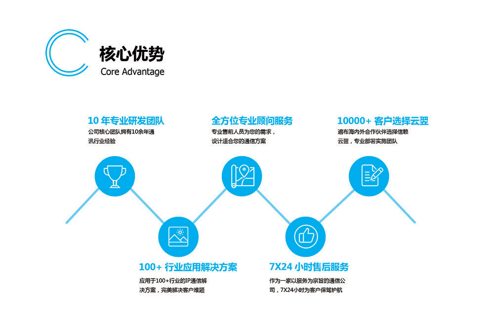 云翌通信一直秉承著"用最簡單的方法,最踏實(shí)的態(tài)度,為用戶創(chuàng)造最大的價(jià)值"為發(fā)展理念,致力于成為國內(nèi)IP通信行業(yè)第一品牌,為客戶提供放心的通信產(chǎn)品及服務(wù)。
