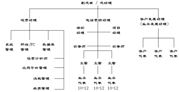 在呼叫中心的組織結(jié)構(gòu)及職能分工上,外包型呼叫中心與企業(yè)自建型呼叫中心有很多共同點(diǎn),它們間主要的區(qū)別在于外包型呼叫中心分工更細(xì),而且有很多專(zhuān)門(mén)人員,而企業(yè)自建型呼叫中主的很多職能是由一人兼任或借助其它部門(mén)的支持和服務(wù)。從一個(gè)典型的外包型呼叫中心的組織結(jié)構(gòu)來(lái)看,通常會(huì)設(shè)置如下一些組織單位: