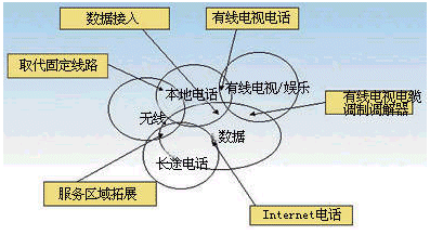 數(shù)據(jù)服務(wù)同本地電話服務(wù)的融合,是不來最重要的融合趨勢之一,其主要體現(xiàn)在通過本地電話可以解決數(shù)據(jù)業(yè)務(wù)的接入問題,可以提供窄帶或?qū)拵У慕尤肽芰。同時,可以為Internet服務(wù),如電子郵件服務(wù)同電話話音服務(wù)結(jié)合起來創(chuàng)造條件。一種未來的發(fā)展方向就是利用電話來接收電子郵件同時可以用電子郵件的方式閱讀語言信箱中的留言!奥犽娮余]件,看語言信箱”是對這種融合服務(wù)的最好描述。而數(shù)據(jù)業(yè)務(wù)同長途電話業(yè)務(wù)的融合集中于通過VoIP技術(shù)提供長途電話服務(wù),競爭收入最大的電信市場。數(shù)據(jù)服務(wù)同有線電視娛樂服務(wù)的融合主要體現(xiàn)在以Cable Modem做為數(shù)據(jù)接入手段和視頻點播這樣的娛樂服務(wù)。通過Cable Modem,有線電視網(wǎng)也可以提供本地電話和長途電話接入業(yè)務(wù),象AT&T和TCI 及MediaOne 正在進行的電話業(yè)務(wù)實驗。而寬帶的數(shù)據(jù)接入則為數(shù)據(jù)服務(wù)的寬帶化提供了條件。
