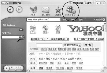 MSN瀏覽器除了靚麗的界面,更集郵件和即時通訊功能為一身,注意圖中圈住的地方,就是與即時通訊軟件MSN的有機(jī)結(jié)合