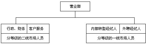此五種模式建立在營業(yè)部基礎(chǔ)上,在券商總部,建議設(shè)立垂直的業(yè)務(wù)管理機(jī)構(gòu),即經(jīng)紀(jì)業(yè)務(wù)總部實(shí)行事業(yè)部制,下設(shè)分工專業(yè)的市場營銷部、客戶服務(wù)部、經(jīng)紀(jì)人訓(xùn)練部和綜合管理部等。