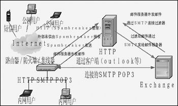 系統(tǒng)環(huán)境:某公司,擁有員工5000人,現(xiàn)在正在使用微軟的Exchange郵件系統(tǒng),由于遭受垃圾郵件和病毒郵件攻擊,系統(tǒng)經常因為負載過大或病毒受到損害,耗費了郵件用戶和管理員的大量精力。公司希望改變這種糟糕的狀況。同時,公司希望能夠監(jiān)控部分員工的信件。