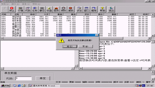 選擇<行情>按鈕進行證券信息發(fā)布,系統(tǒng)自動彈出<提示>窗口,如圖3.5