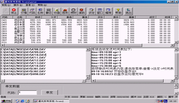 行情也可以單發(fā),只要在進行證券信息發(fā)布時在程序主界面的下方<單發(fā)數(shù)據(jù)>區(qū)輸入要單發(fā)的股票代碼,然后點擊<單發(fā)>按鈕,系統(tǒng)就會盡快刷新該只股票。