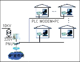 利用普通220V電源線作載體,將IP寬帶信號(hào)接入每個(gè)家庭的PLC(Power Line Communication)網(wǎng)絡(luò)正在進(jìn)入小區(qū)/樓宇市場(chǎng)。它是通過(guò)電力線網(wǎng)絡(luò)單元(PNU)將寬帶接入信號(hào)經(jīng)正交頻分復(fù)用(OFDM)調(diào)制、匯入小區(qū)/樓宇電力變壓器用戶輸出線上,再經(jīng)電源線送到各家各戶。PC、IP Phone、Fax設(shè)備均可通過(guò)房間內(nèi)部的電源插座寬帶接入Internet。