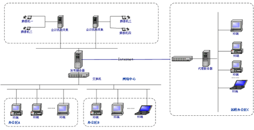 下屬各單位辦公區(qū)的工作終端或遠(yuǎn)程(Internet)終端,可以連接到中心機(jī)房的轉(zhuǎn)播服務(wù)器上進(jìn)行接收數(shù)據(jù)。用戶只需直接打開IE瀏覽器然后輸入轉(zhuǎn)播服務(wù)器的IP地址或者相關(guān)鏈接,進(jìn)入到正在直播的會(huì)議現(xiàn)場(chǎng),實(shí)現(xiàn)遠(yuǎn)程實(shí)時(shí)參與會(huì)議的目的。