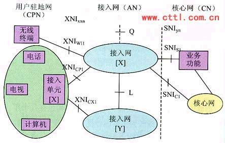 在圖中,XNI為接入網(wǎng)與用戶(hù)駐地網(wǎng)的接口,SNI為接入網(wǎng)到核心網(wǎng)之間的接口,L參考點(diǎn)為不同接入網(wǎng)之間的接口參考點(diǎn)。下一代的接入網(wǎng)應(yīng)綜合利用多種手段在XNI和SNI之間提供有質(zhì)量保證的基于分組的寬帶的傳送承載能力。下一代網(wǎng)絡(luò)的接入網(wǎng)應(yīng)具有以下特點(diǎn):