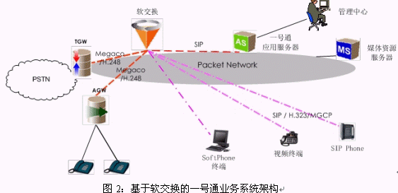 軟交換和一號通應用服務器一般通過SIP協(xié)議進行互連,和接入網(wǎng)關一般通過H.248或者Megaco協(xié)議互連。
