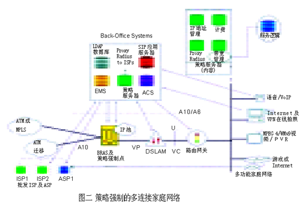 運(yùn)營(yíng)商基礎(chǔ)網(wǎng)絡(luò)形形色色的演化,歸根結(jié)底都圍繞著運(yùn)營(yíng)商最關(guān)心的利潤(rùn)增長(zhǎng)問(wèn)題。隨著全球投入使用的DSL線路數(shù)目迅速接近1億,利用現(xiàn)有的DSL網(wǎng)絡(luò)提供更加豐富的高端服務(wù),成為業(yè)界共同矚目的焦點(diǎn)。采用QoS和可靠的端對(duì)端策略強(qiáng)制 (policy enforcement) 技術(shù)是目前許多應(yīng)用軟件的主要特征。如何把這些特性應(yīng)用到DSL網(wǎng)絡(luò)上呢?