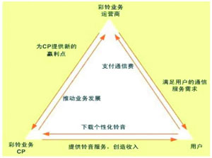 如今,韓國的彩鈴業(yè)務(wù)已遍地開花,超過50%的手機用戶在使用彩鈴服務(wù),運營商因此每月能獲得1500萬美元的收益。小彩鈴喚來了大市場。個人用戶無需購買昂貴的終端就可通過彩鈴業(yè)務(wù)向外界傳遞個性和情感。商業(yè)用戶將回鈴音設(shè)置成廣告/宣傳語,使客戶在與企業(yè)員工交流的同時接收企業(yè)的相關(guān)信息,例如企業(yè)文化、產(chǎn)品、銷售信息等,直接或間接地增加了企業(yè)的市場機會。彩鈴業(yè)務(wù)為運營商帶來了直接的經(jīng)濟(jì)收益,也帶來了特征用戶群,在語音增值業(yè)務(wù)中實現(xiàn)了產(chǎn)業(yè)鏈合作。同時,運營商通過對特征用戶群的研究分析發(fā)現(xiàn)了未來商機,并通過在語音增值業(yè)務(wù)產(chǎn)業(yè)鏈中引入ICP/ISP達(dá)到了資源的有效利用。
