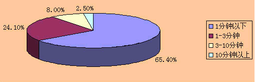 “彩話”業(yè)務主要應用是主叫方為了通話中的和諧溝通而設置的,因此它與通話時長具有正相關性,一般短暫的工作式或通知式的通話無須主叫方設置背景音效。根據(jù)信息產(chǎn)業(yè)部提供的《電信資費聽證會資料》,國家統(tǒng)計局對全國24個大、中、小城市電話用戶通話時長進行了調(diào)查,調(diào)查結果見圖1所示。