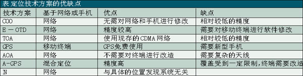 基于移動(dòng)終端的定位技術(shù)包括全球定位系統(tǒng)——GPS、基于移動(dòng)終端信號(hào)發(fā)送和接收的時(shí)戳或角度的技術(shù)——E-OTD(增強(qiáng)觀測(cè)時(shí)間差分)/TOA(到達(dá)時(shí)間),以及來(lái)源蜂窩小區(qū)——COO技術(shù)(還有所謂的輔助GPS—A-GPS技術(shù)作為對(duì)COO技術(shù)的補(bǔ)充)。