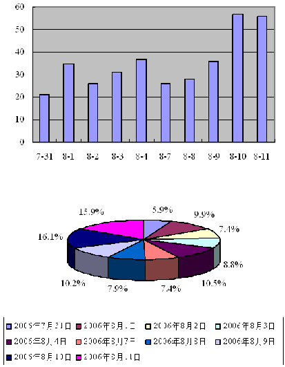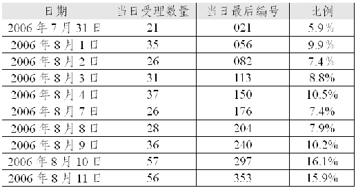 《通告》規(guī)定,擬在第一階段調(diào)整的SP代碼主要是已經(jīng)基礎(chǔ)運(yùn)營(yíng)商分配并已開(kāi)通、且希望原代碼后4位與新代碼后4位保持一致的。在《通告》規(guī)定的提交申請(qǐng)有效時(shí)間內(nèi)(2006年7月31日8時(shí)至2006年8月11日17時(shí)),信息產(chǎn)業(yè)部共受理符合《通告》要求的代碼調(diào)整申請(qǐng)353份(有關(guān)信息詳見(jiàn)附表1),共涉及申請(qǐng)單位353家、擬申請(qǐng)SP代碼344個(gè)。