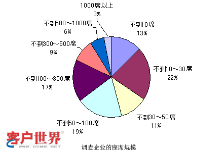 那么和剛才雜志社調(diào)查的結(jié)果是一樣的。這個數(shù)字又是政府方面調(diào)查的結(jié)果,他們調(diào)查的很細,對很小規(guī)模的,比如說1-4人的呼叫中心都進行了調(diào)查,并且看到這種小規(guī)模的呼叫中心還占有很大的比例?梢钥吹,10人以下的呼叫中心可能在這個結(jié)果里面占了基本上高于50%,所以可能得到一個結(jié)論,就是在日本小型的呼叫中心非常多。