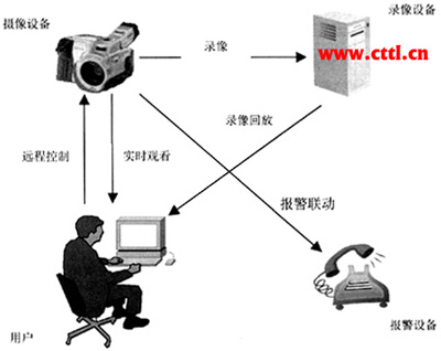 視頻監(jiān)控的基本業(yè)務(wù)功能是提供實時監(jiān)視的手段,并對被監(jiān)視的畫面進行錄像存儲,以便事后回放。在此基礎(chǔ)上,高級的視頻監(jiān)控系統(tǒng)可以對監(jiān)控裝置進行遠(yuǎn)程控制,并能接收報警信號,進行報警觸發(fā)與聯(lián)動。業(yè)務(wù)功能如圖1所示。