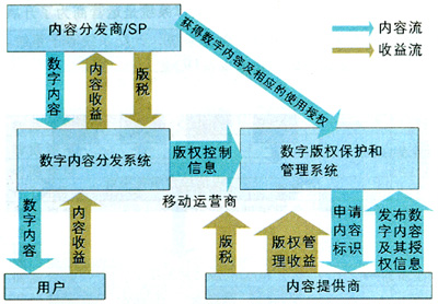 版權(quán)技術(shù)就是數(shù)字內(nèi)容版權(quán)管理(DRM)技術(shù),即給數(shù)字內(nèi)容一定的控制和標識,避免其被非法使用、拷貝和盜版,為基于內(nèi)容的各種增值業(yè)務發(fā)展提供安全保證。目前,數(shù)字版權(quán)管理技術(shù)正由第一代向第二代發(fā)展。DRM1.0技術(shù)主要用于內(nèi)容的保護,DRM2.0主要加強通信保護和密鑰保護,這正是移動網(wǎng)需要的。