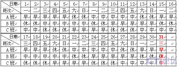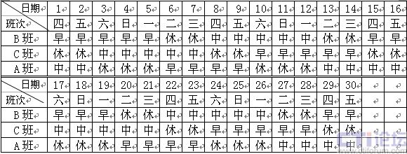1)正常日班人員:主要的工作時間是8:00~16:00,該班組人員是固定在這一時間段內(nèi)工作,不另作安排。