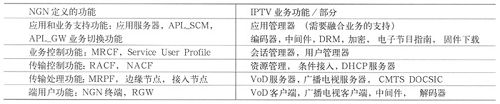 表1NGN業(yè)務功能和IPTV業(yè)務功能的關系